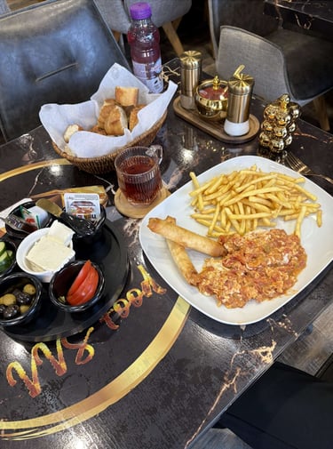 Olives, börek, simit, frites, œuf, sucuk, tomate, concombre, fromage, beurre, confiture, théIstanbul – 14,00 €