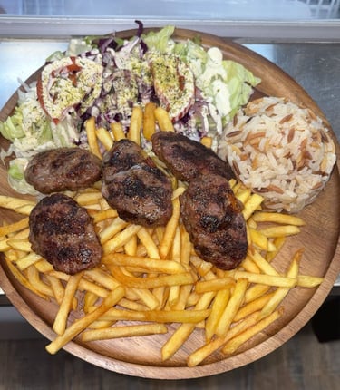 → Viande hachée épicée, crudités, sauceMerguez – 8,00 € (solo) / 11,50 € (menu)